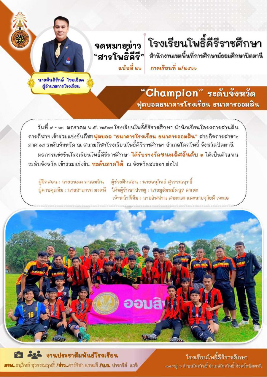 CHAMPION ระดับจังหวัด ฟุตบอลธนาคารโรงเรียน ธนาคารออมสิน