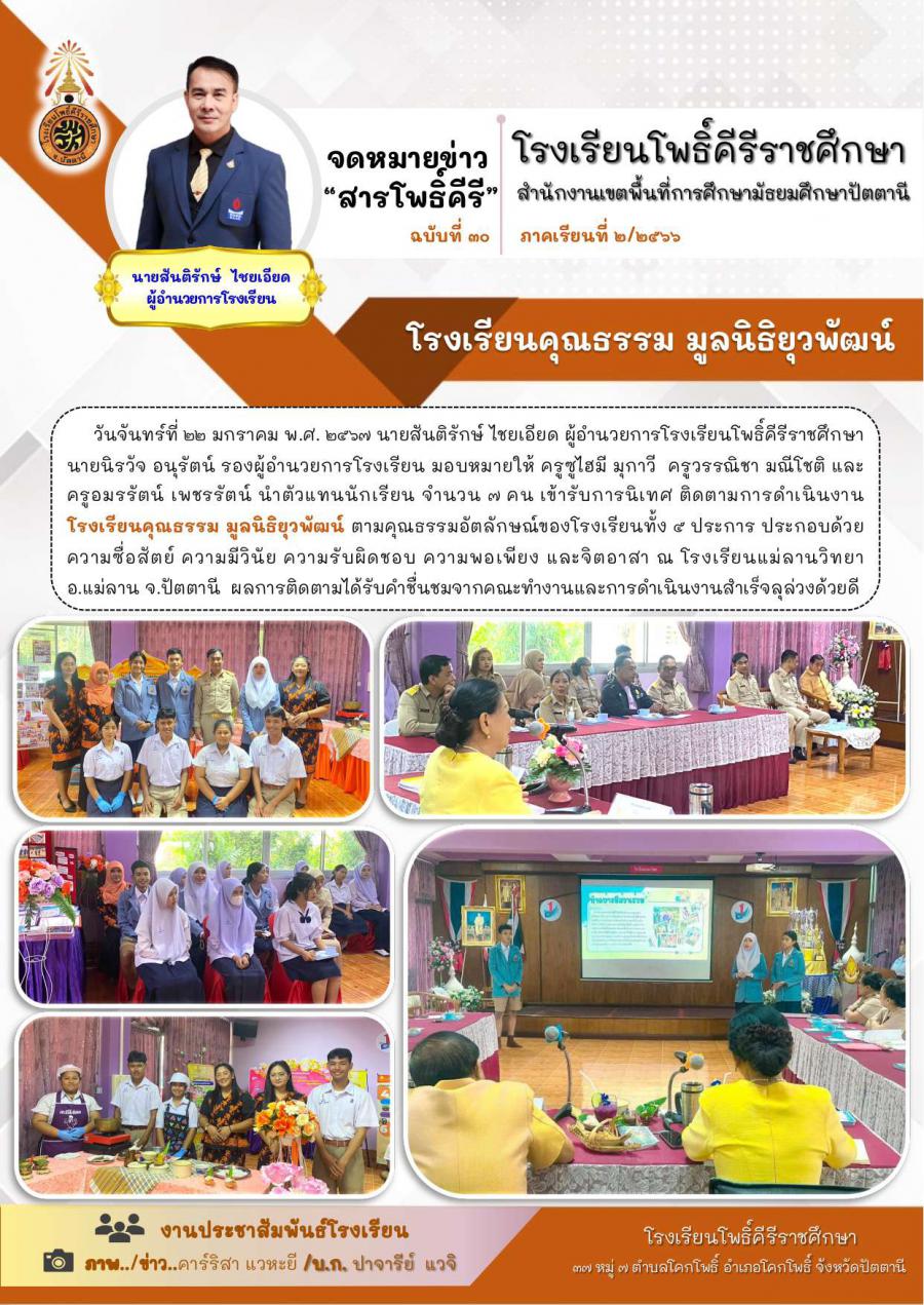 โรงเรียนคุณธรรม มูลนิธิยุวพัฒน์ ณ โรงเรียนแม่ลานวิทยา อ.แม่ลาน จ.ปัตตานี