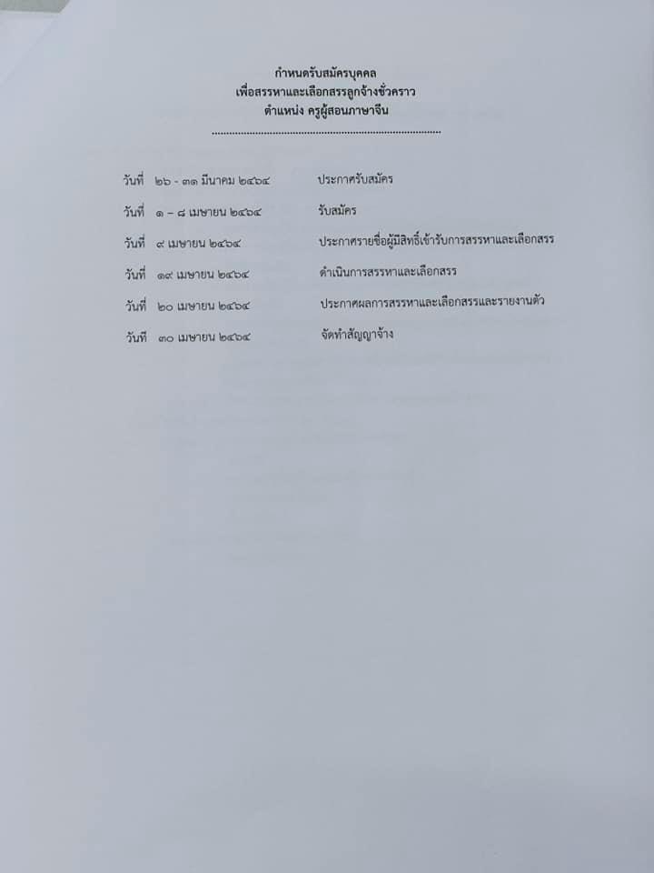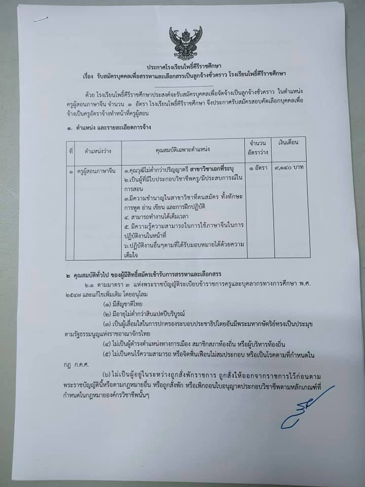ประกาศโรงเรียนโพธิ์คีรีราชศึกษา เรื่องการรับสมัครลูกจ้างชั่วคราวตำแหน่งครูผู้สอนภาษาจีน