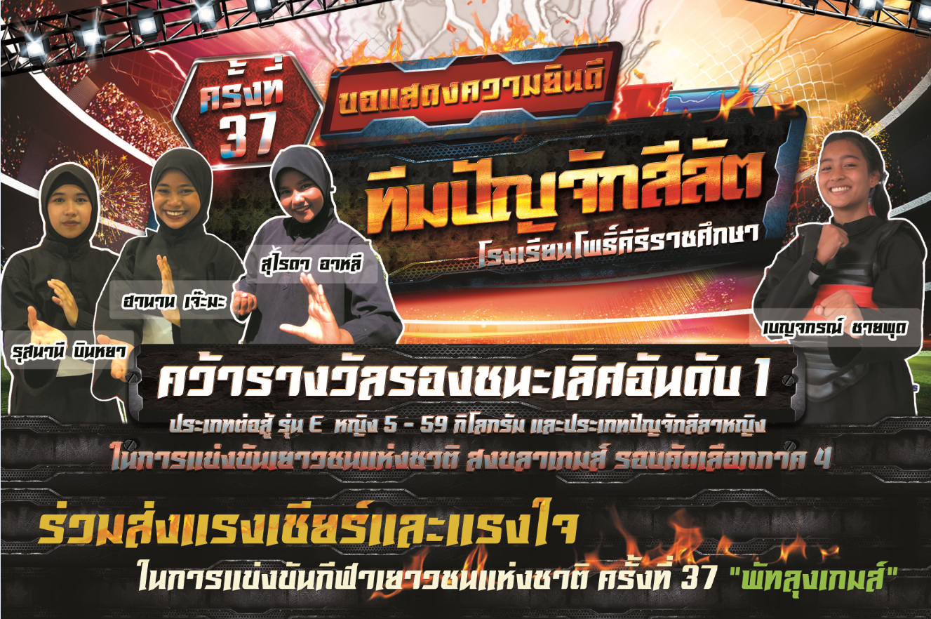 ขอแสดงความยินดีกับ ทีมนักกีฬา ปันจักสิลัต โรงเรียนโพธิ์คีรีราชศึกษา คว้ารางวัลรองชนะเลิศอันดับ 1