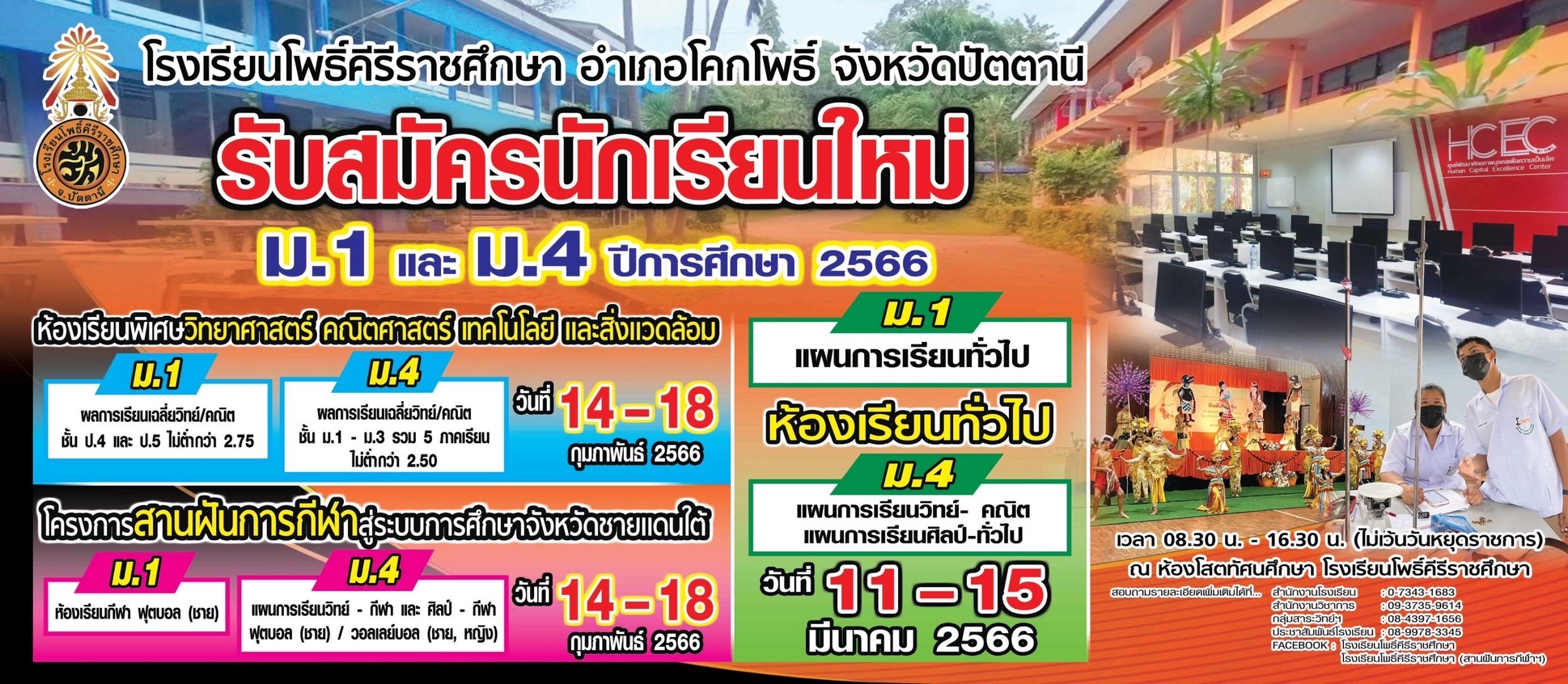 ประชาสัมพันธ์การรับสมัครห้องเรียนใหม่ ชั้นมัธยมศึกษาปีที่ 1 และ 4 ปีการศึกษา 2566