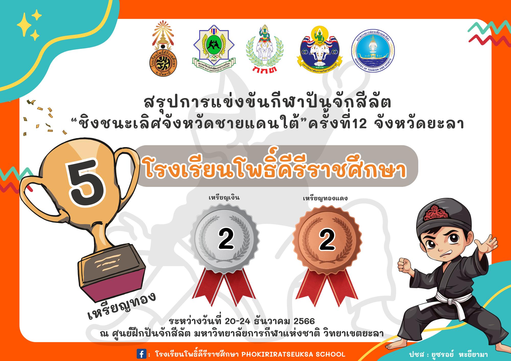 สรุปผลการแข่งขันกีฬาปันจักสีลัต “ชิงชนะเลิศจังหวัดชายแดนใต้”ครั้งที่ 12 จังหวัดยะลา ระหว่างวันที่ 20-24 ธันวาคม 2566 ณ ศูนย์ฝึกปันจักสีลัต มหาวิทยาลัยการกีฬาแห่งชาติ วิทยาเขตยะลา