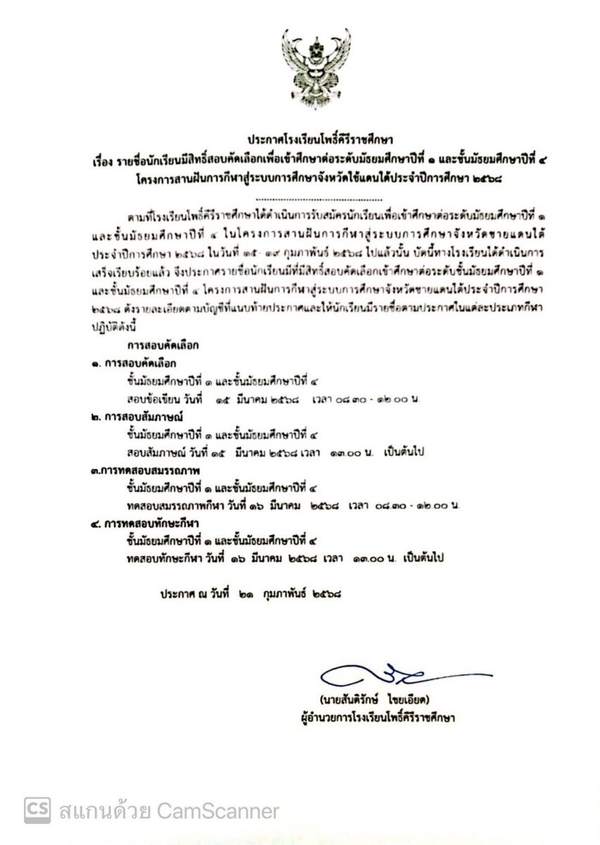ประกาศ : เรื่องรายชื่อนักเรียนมีสิทธิ์สอบคัดเลือกเพื่อเข้าศึกษาต่อระดับมัธยมศึกษาปีที่ ๑ และ ชั้นมัธยมศึกษาปีที่ ๔
