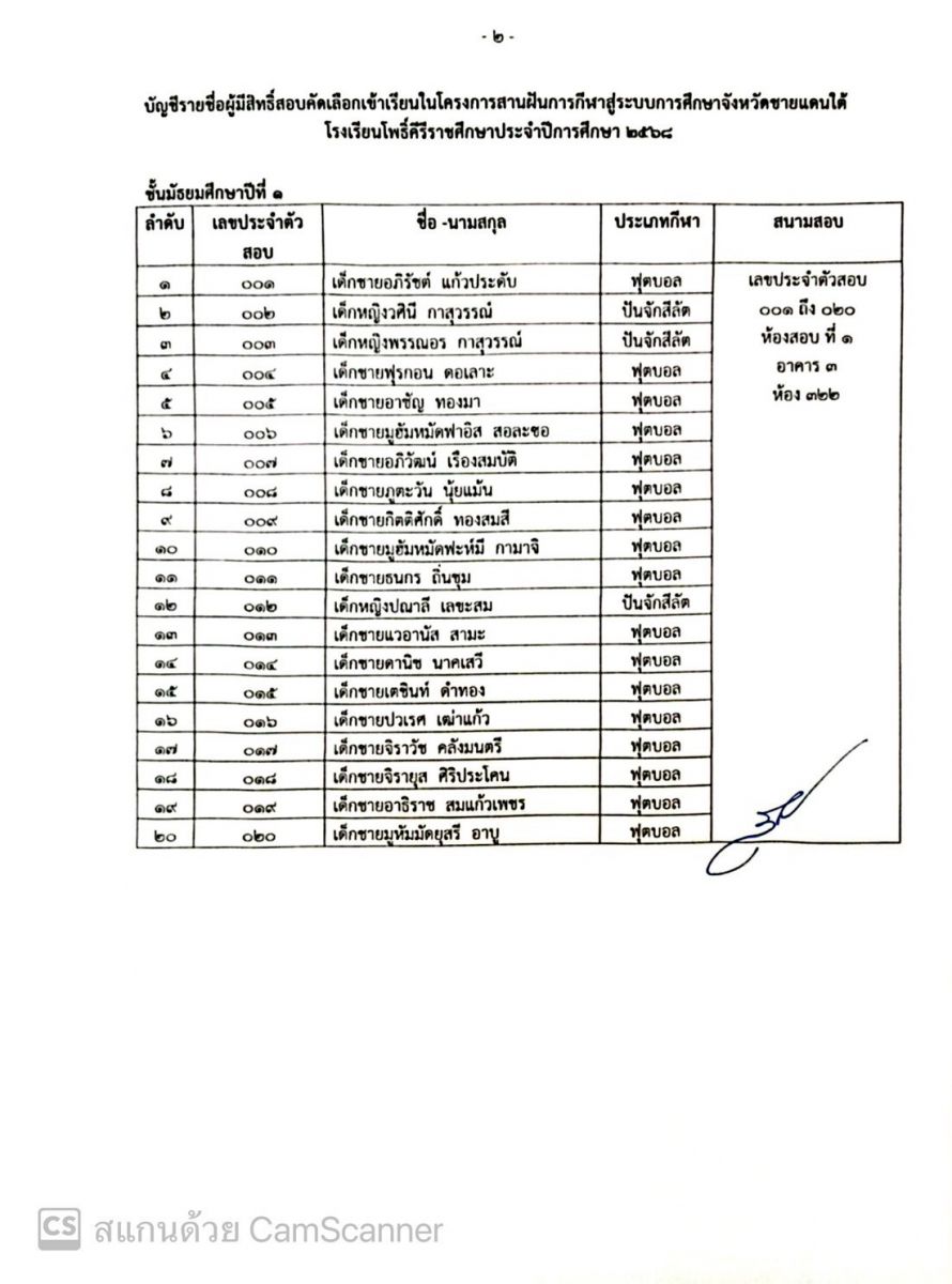 ประกาศ : เรื่องรายชื่อนักเรียนมีสิทธิ์สอบคัดเลือกเพื่อเข้าศึกษาต่อระดับมัธยมศึกษาปีที่ ๑ และ ชั้นมัธยมศึกษาปีที่ ๔ โครงการสานฝันการกีฬาสู่ระบบการศึกษาจังหวัดชายแดนใต้